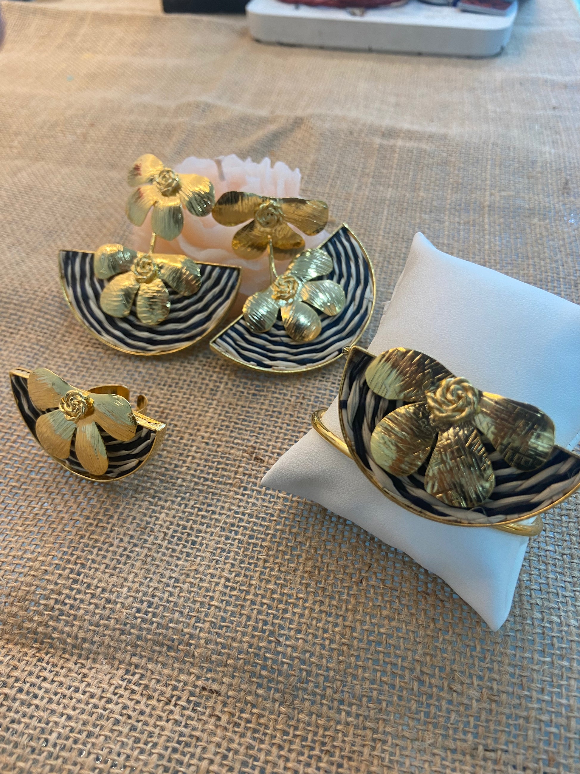 Earrings: Lightweight yet full of presence, these blooming flowers frame your face with effortless charm.